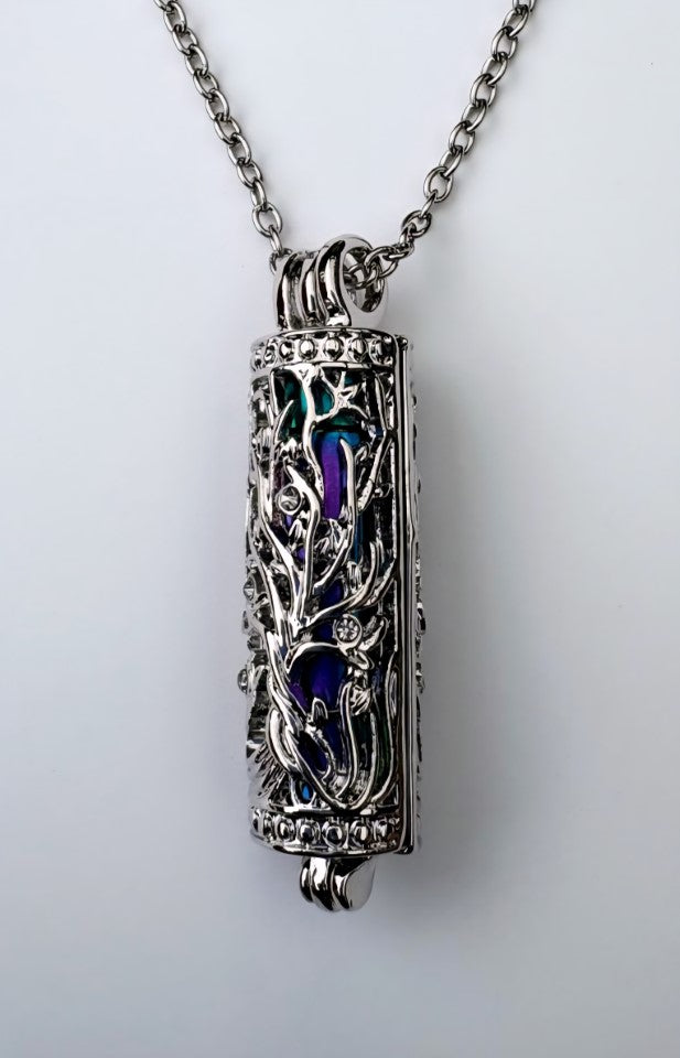 Nature-Inspired Cylinder Memorial Urn Pendant – With Colourful Inner Chamber and chain